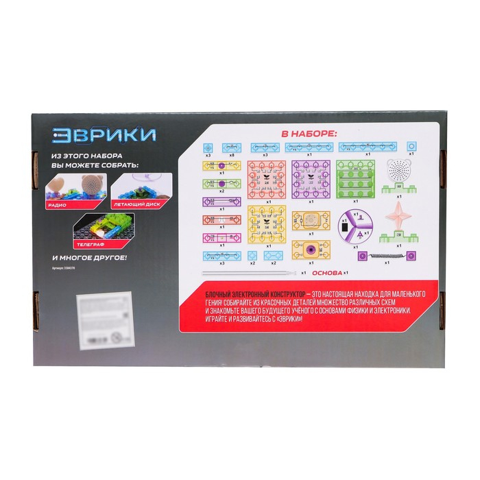 Конструктор электронный «Эврики», 357 схем, 38 элементов, работает от батареек