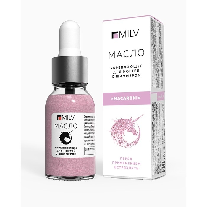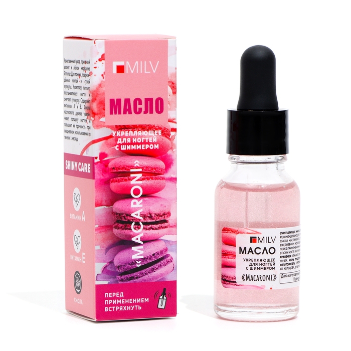 Укрепляющее масло для ногтей Milv Macaroni со смолой мастикового дерева и шиммером, 15 мл