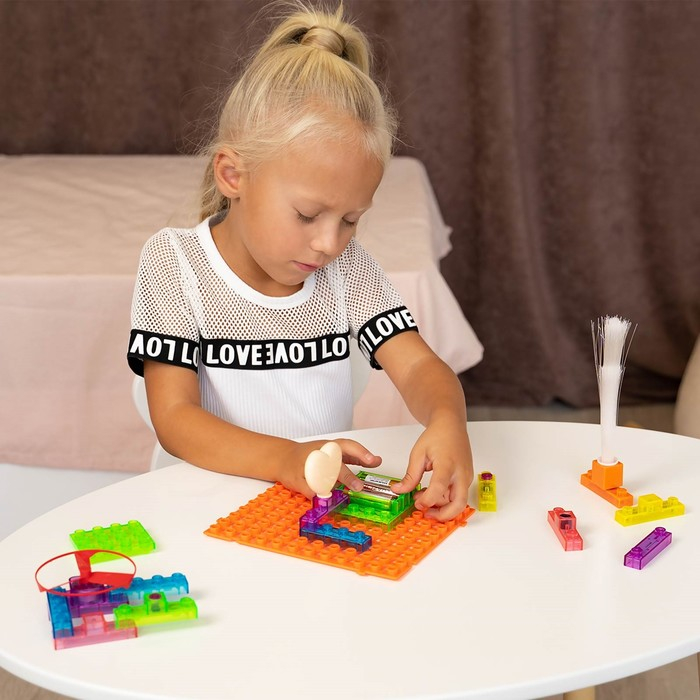 Увлекательный набор познакомит ребёнка с основами физики и электроники. Конструктор имеет множество вариантов сборки, благодаря которым юный инженер узнает о принципах работы электричества и научится самостоятельно собирать простые схемы.