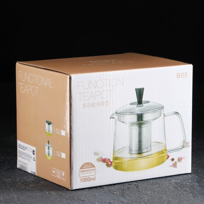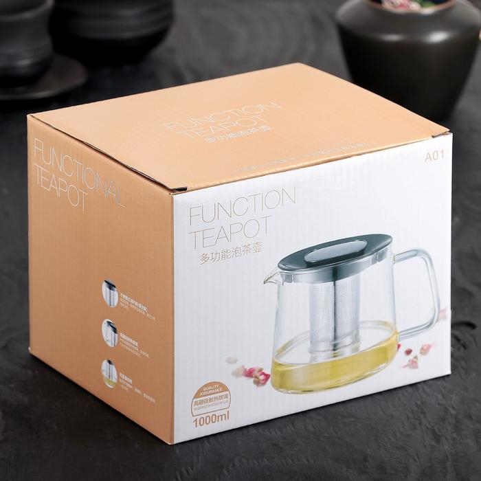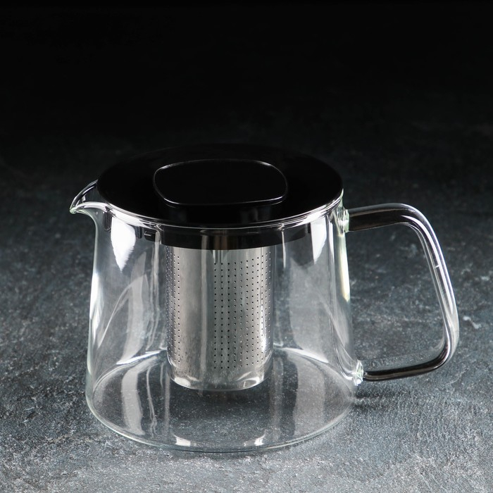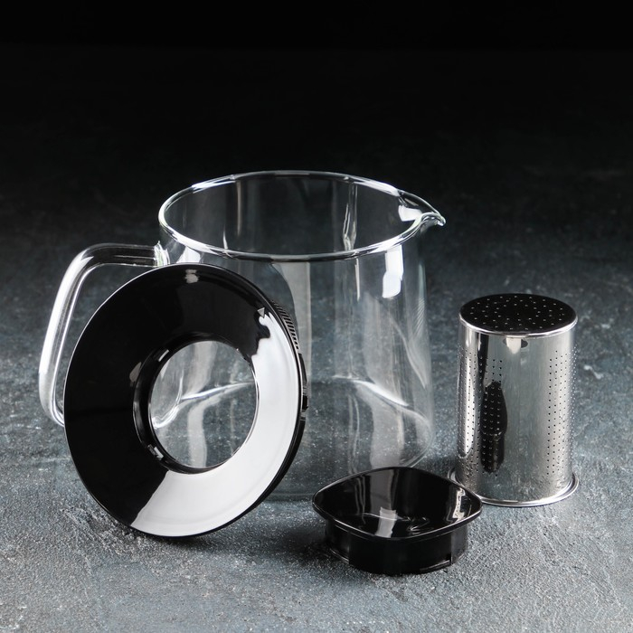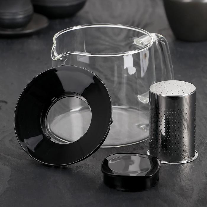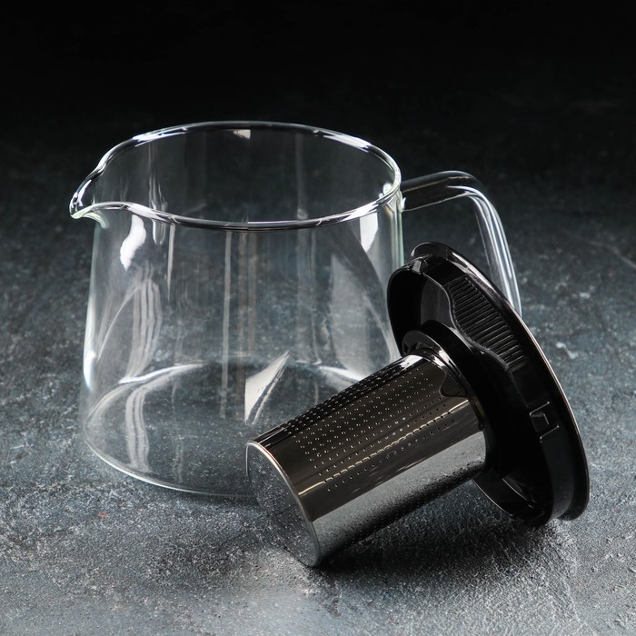 Чайник стеклянный заварочный «Локи», 1,4 л, с металлическим ситом, цвет чёрный