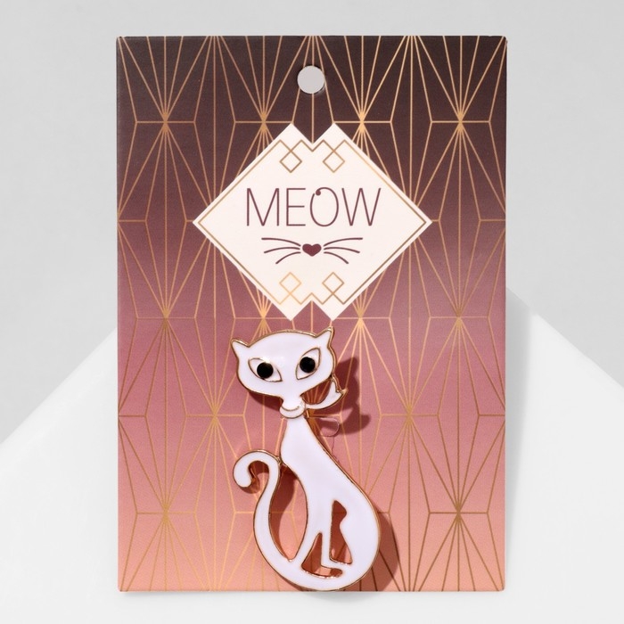 Брошь «Кошка» мур-мур, цвет белый в золоте