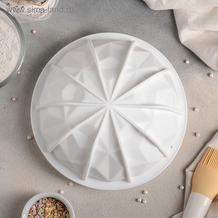 Форма для муссовых десертов и выпечки Доляна «Рябь», силикон, 18×18 см, внутренний размер 16×6,5 см, цвет белый