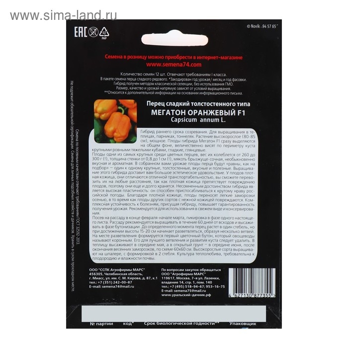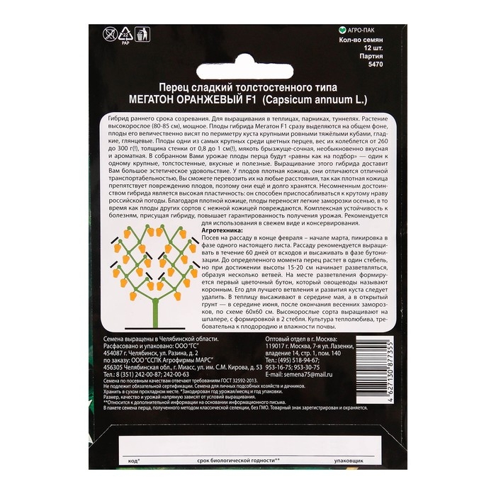 Семена Перец сладкий "Мегатон оранжевый" F1,12 шт.