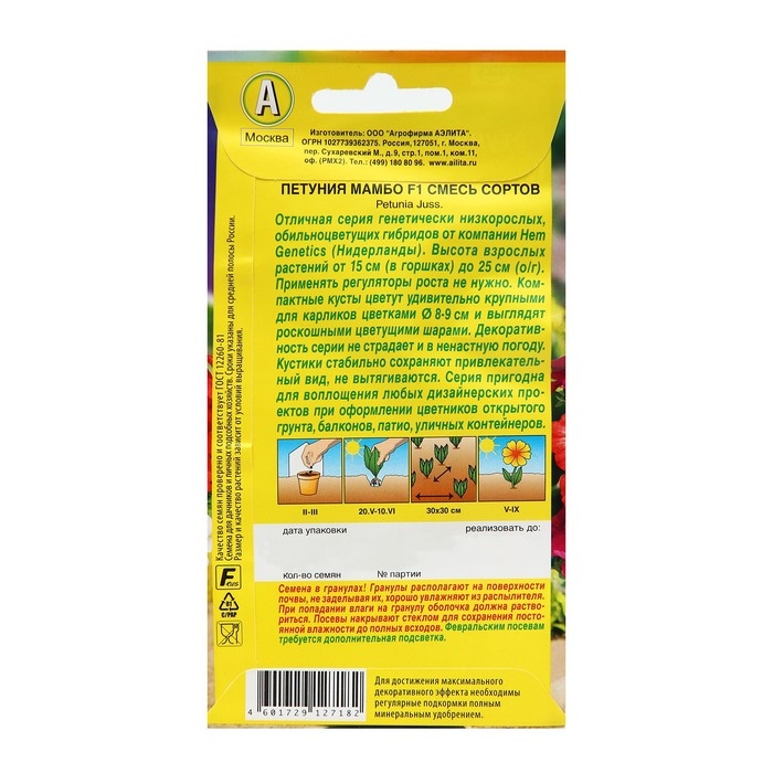 Посев на рассаду с февраля до апреля. Семена в гранулах! Посев поверхностный, без заделки (семена прорастают на свету!), под стекло или пленку для сохранения постоянной влажности до полных всходов. Гранулы при посеве должны раствориться! Февральским посевам требуется дополнительная подсветка. Всходы появляются на 5-6 день. Пикировка в фазе 1-2-х настоящих листьев. Высадка в грунт закаленной рассады в конце мая.