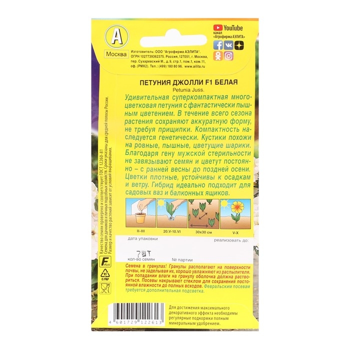 Семена Петуния Джолли белая F1 многоцветковая, 7 шт