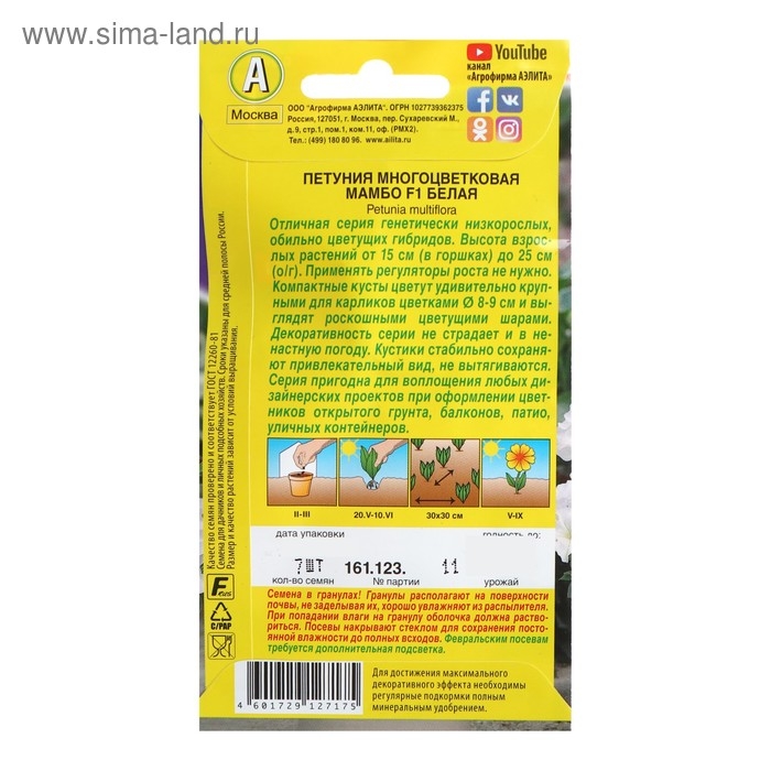 Семена Петуния "Мамбо" F1 белая многоцветковая, 7 шт