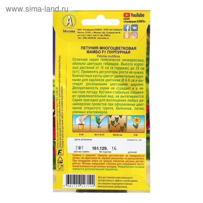 Посев на рассаду с февраля до апреля. Семена в гранулах! Посев поверхностный, без заделки (семена прорастают на свету!), под стекло или пленку для сохранения постоянной влажности до полных всходов. Гранулы при посеве должны раствориться! Февральским посевам требуется дополнительная подсветка. Всходы появляются на 5-6 день. Пикировка в фазе 1-2-х настоящих листьев. Высадка в грунт закаленной рассады в конце мая.
