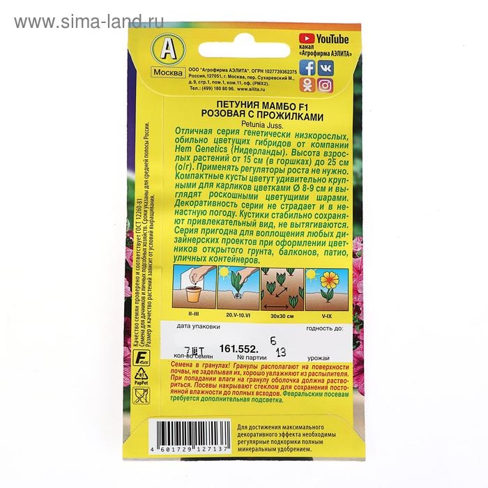 Семена Петуния Мамбо F1 розовая с прожилками многоцветковая, 7 шт
