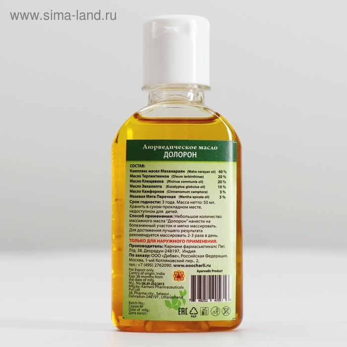 Аюрведическое масло Долорон, от простуды и для суставов 50мл.