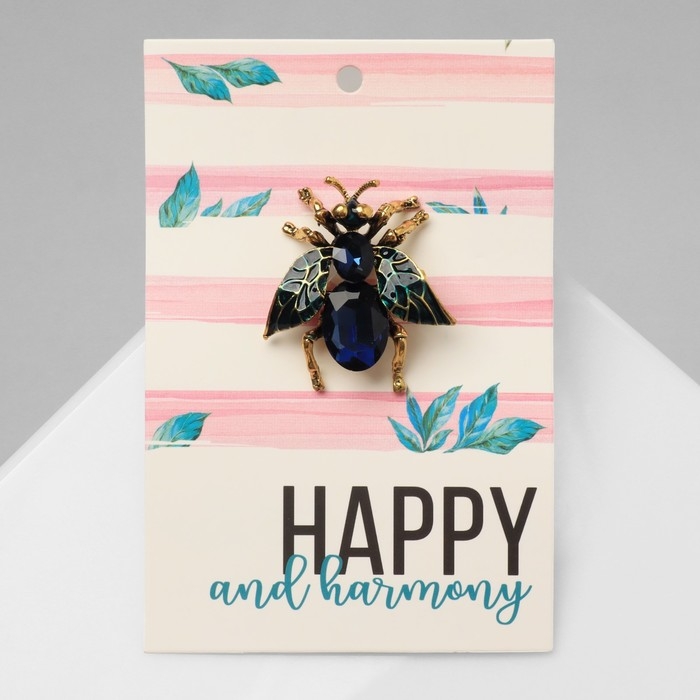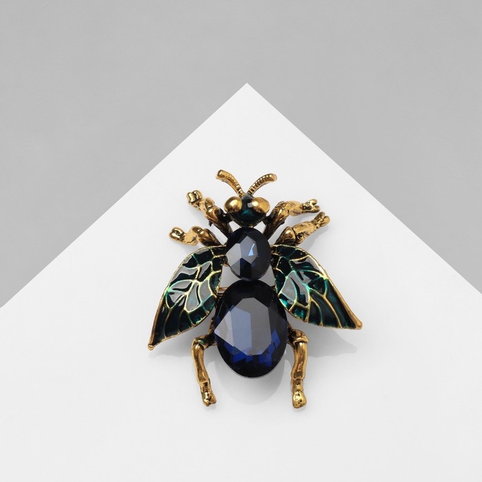 Брошь «Муха» крупная, цвет тёмно-синий в чернёном золоте
