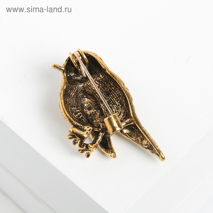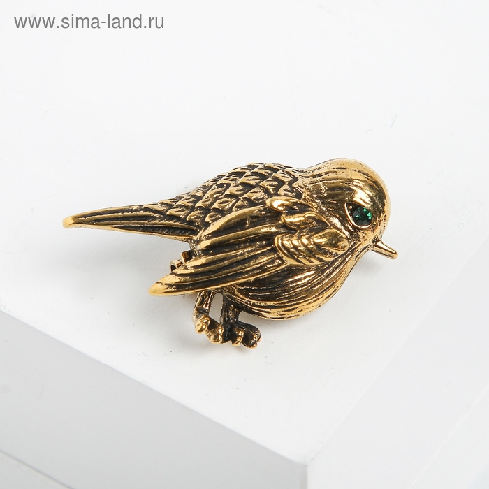 Брошь «Птица» воробушек, цвет зелёный в чернёном золоте