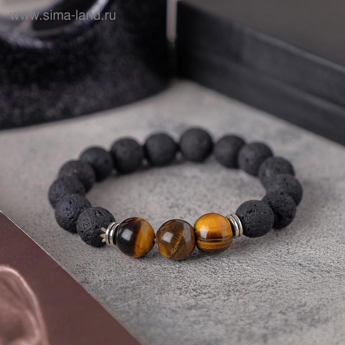 Браслет унисекс «Лава» тигровый глаз, цвет чёрно-коричневый