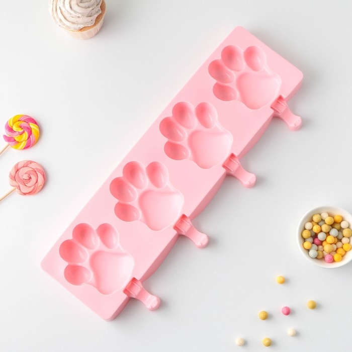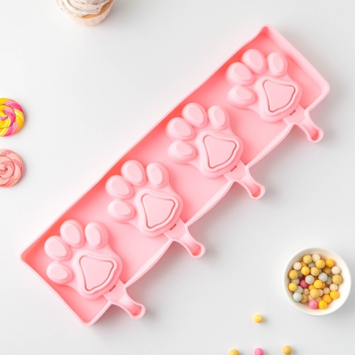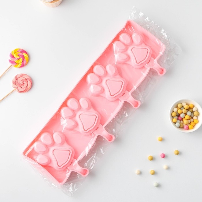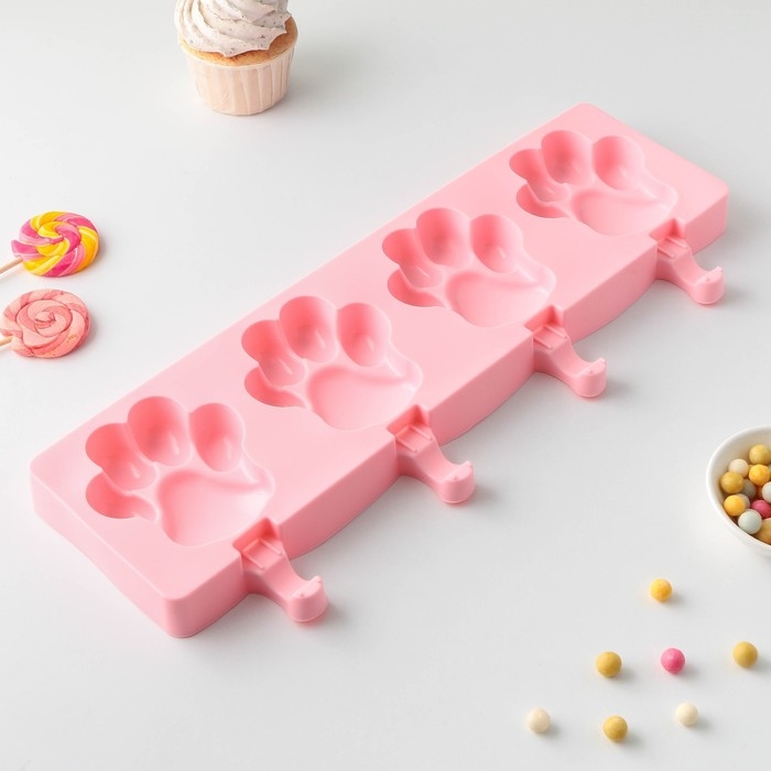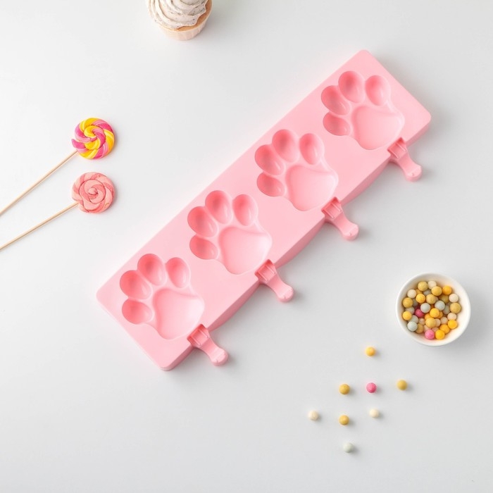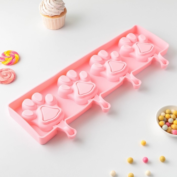 Форма для мороженого «Лапки», силикон, 26×14 см, 4 ячейки (8,5×8,5 см), цвет МИКС