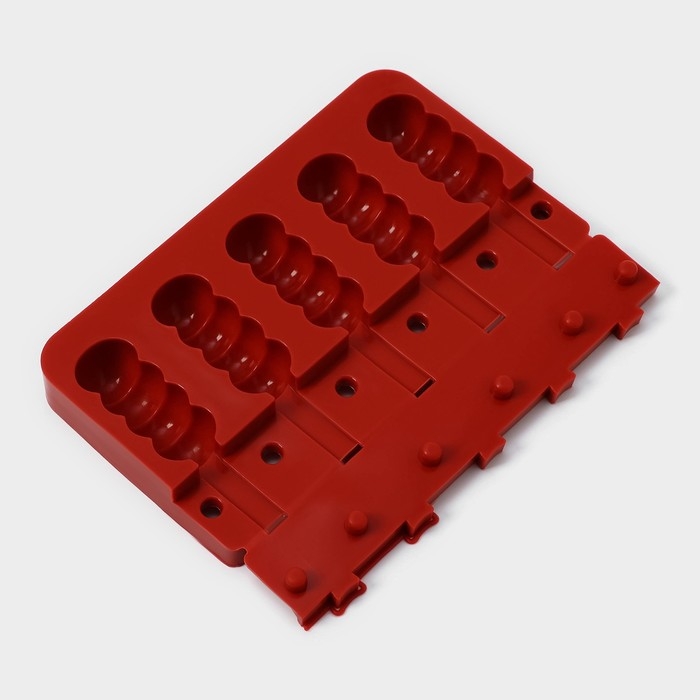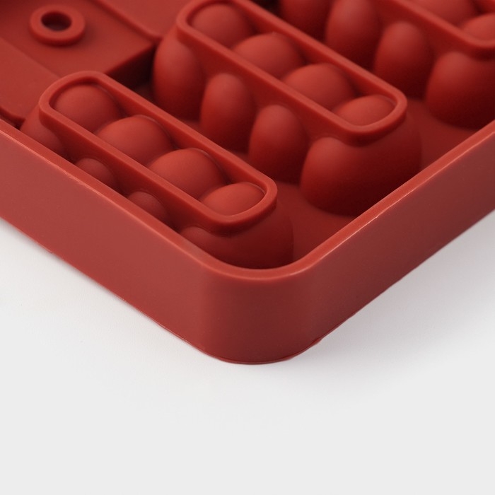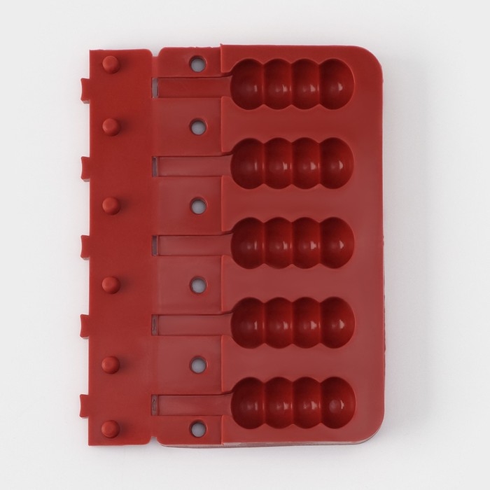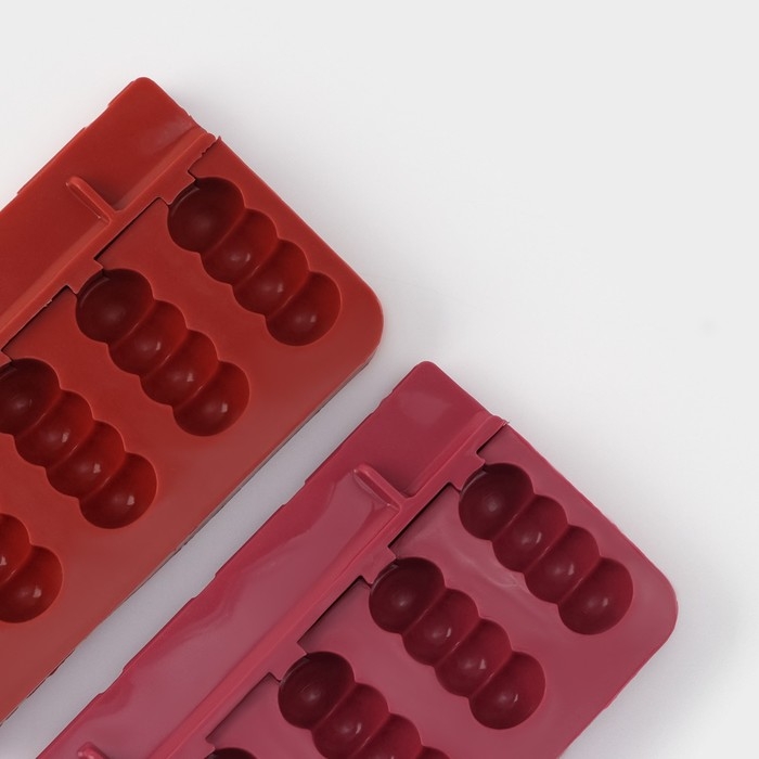 Форма для леденцов новогодняя Доляна «Новый год», силикон, 31×9 см, 4 ячейки, с палочками, цвет красный