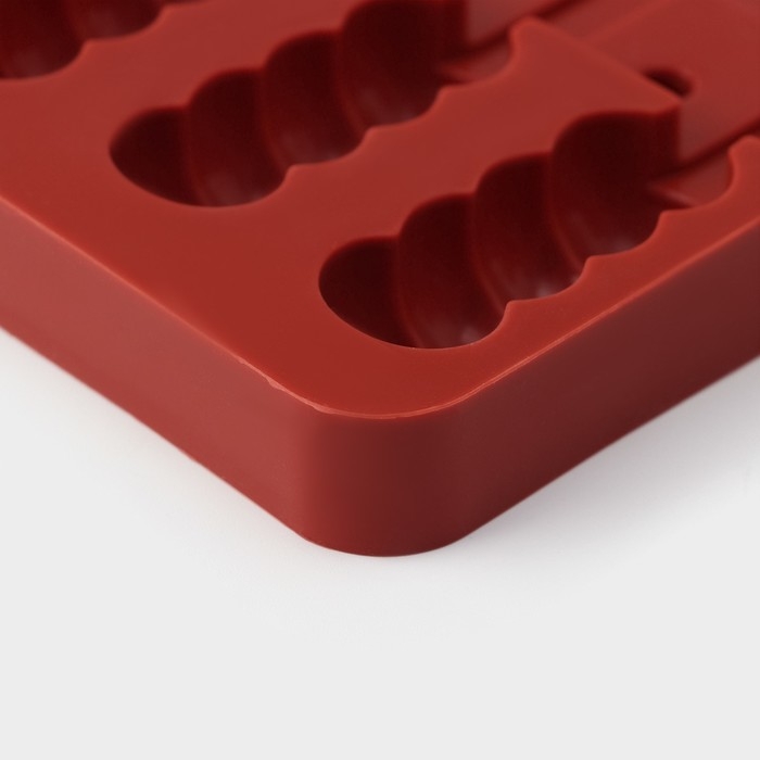 Форма для леденцов Доляна «Поцелуй», силикон, 24×9,4×1,5 см, 6 ячеек (4×2,4 см), с палочками, цвет коричневый