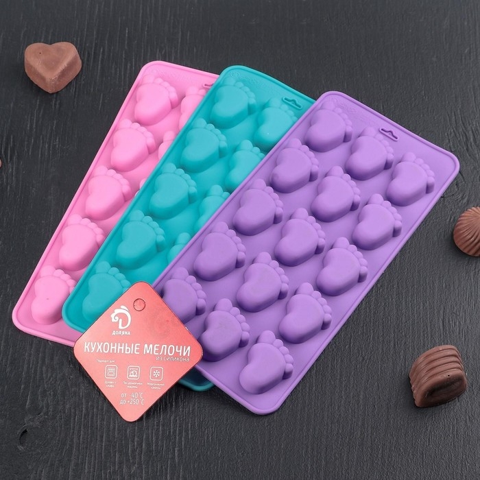 Форма для конфет и шоколада Доляна «Следопыт», силикон, 22×10×1,8 см, 15 ячеек (3,6×2,7 см), цвет МИКС