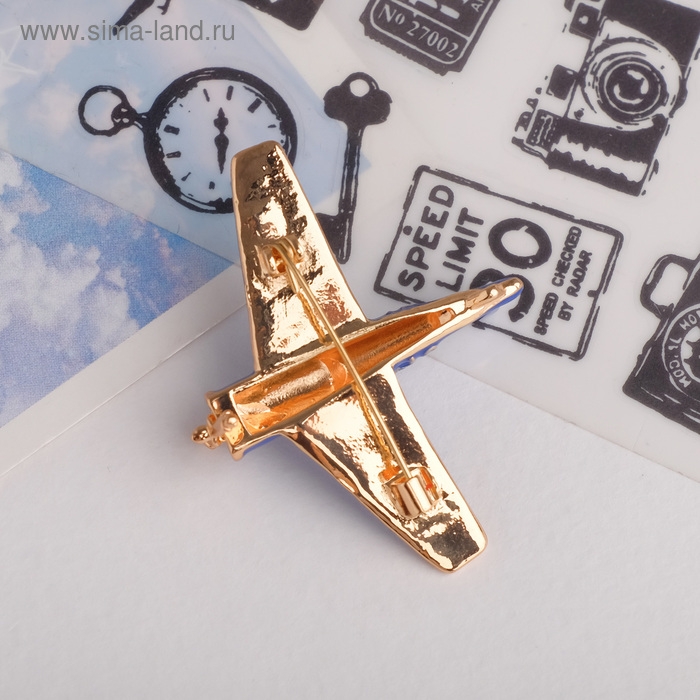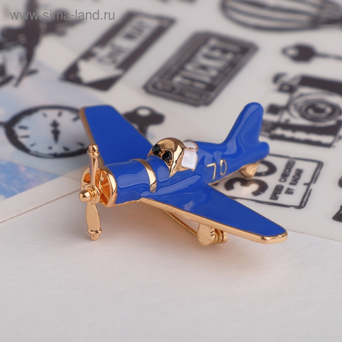 Брошь «Самолёт» с пропеллером, цвет синий в золоте