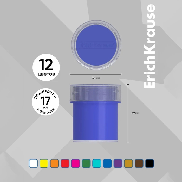 Гуашь 12 цветов х 17 мл, ErichKrause, в картонной упаковке