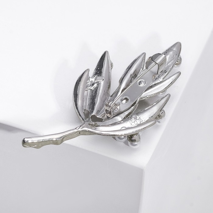 Брошь «Ветвь» с жемчужиной, цвет белый в золоте
