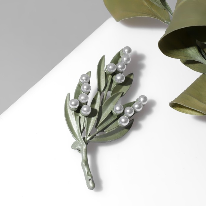 Брошь «Ветка» жемчужных ягод, цвет белый в золоте
