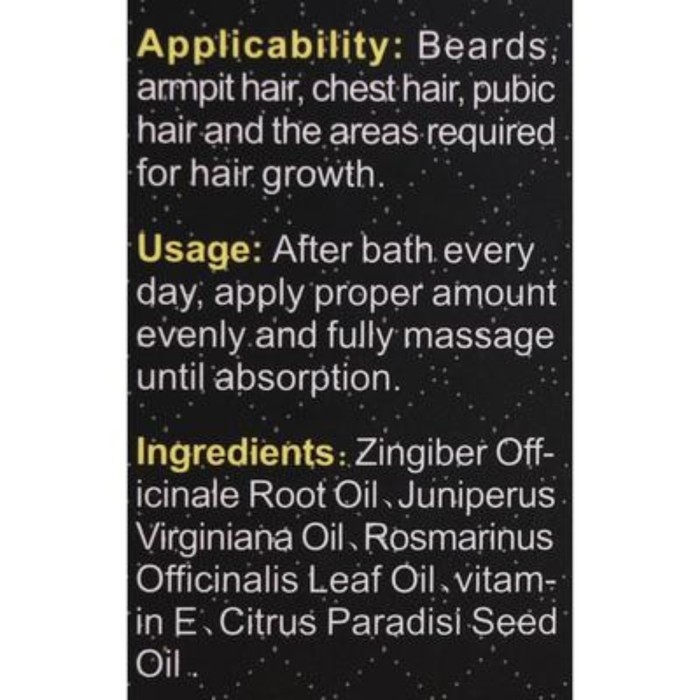 Место применения: борода, бакенбарды, волосы подмышек, волосы на груди и необходимые области для роста волос.