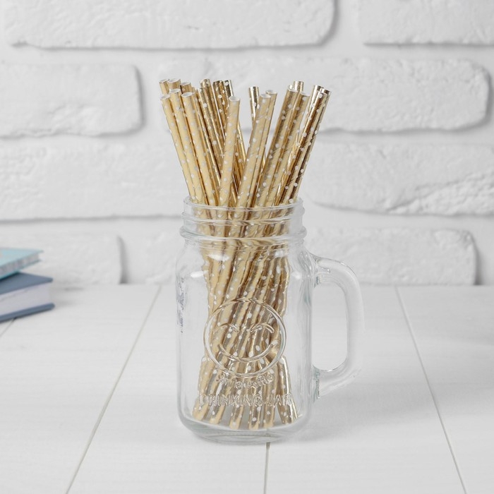 Трубочки для коктейля «Конфетти», набор 25 шт., цвет золотой