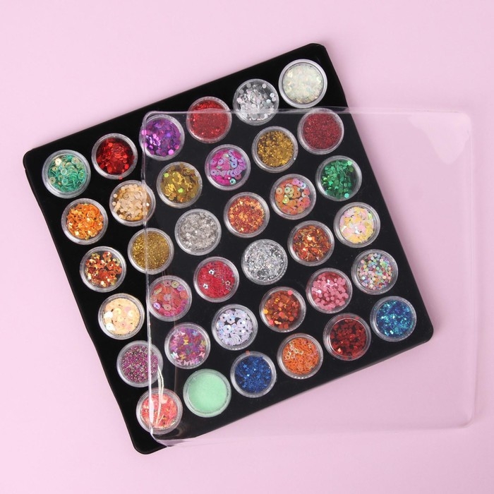 Набор для декора ногтей, в пластиковом органайзере, набор 36 баночек, разноцветные