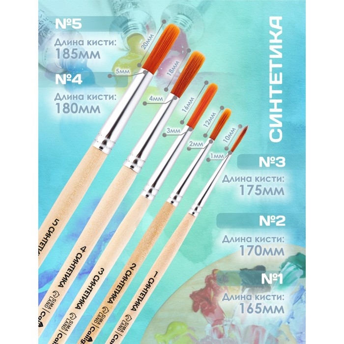 В наборе круглые кисти №1, №2, №3, №4, №5.
