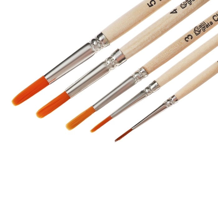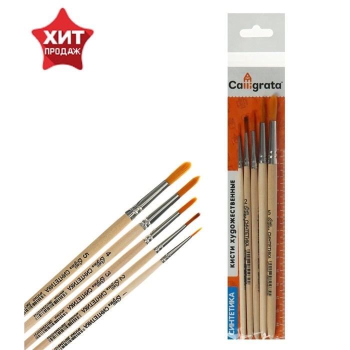 Набор кистей Синтетика 5 штук, Calligrata №1 (круглые №: 1, 2, 3, 4, 5), деревянная ручка