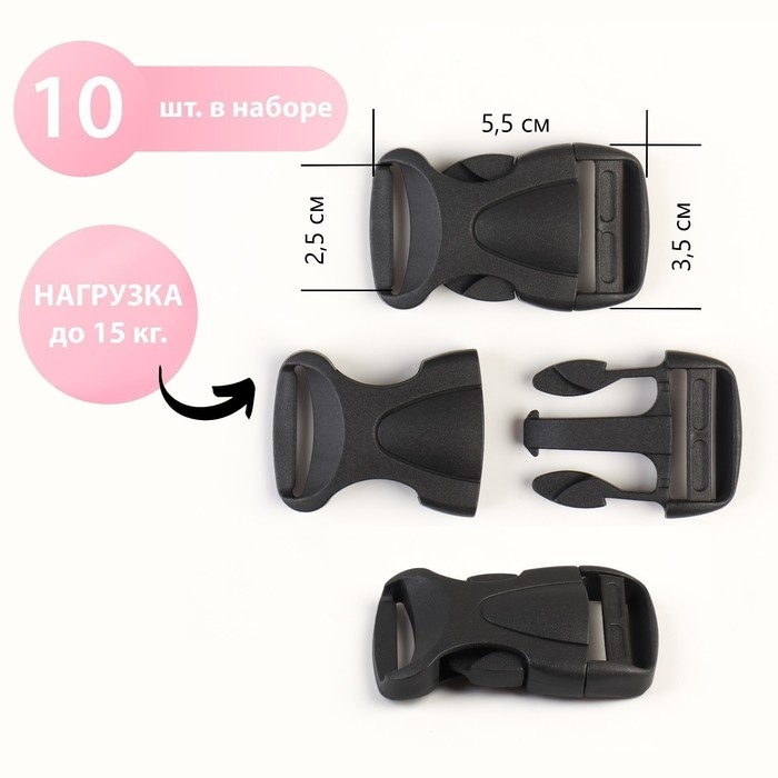 Фастекс 25 мм, нагрузка до 15 кг, 10 шт, цвет чёрный, цена за 1 набор