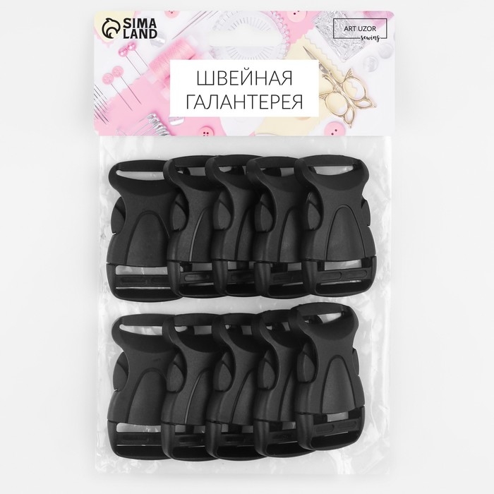 Фастекс 20 мм, нагрузка до 15 кг, 10 шт, цвет чёрный, цена за 1 набор
