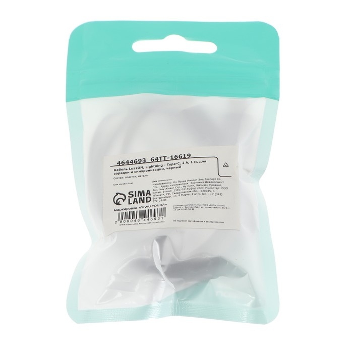 Кабель Luazon, Lightning - Type-C, 2 А, 1 м, для зарядки и синхронизации, черный