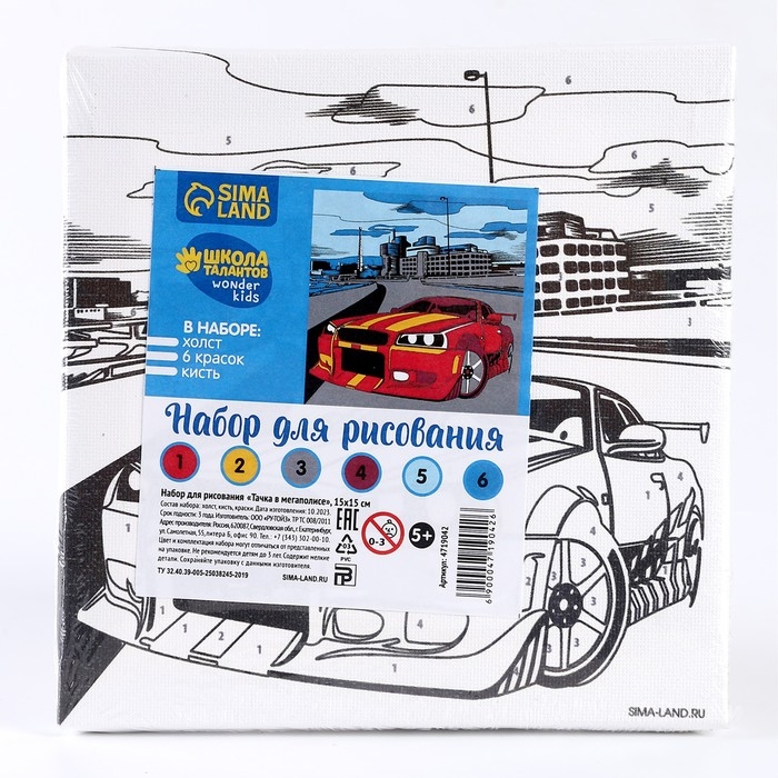 Картина по номерам для детей «Тачка в мегаполисе», 15 х 15 см