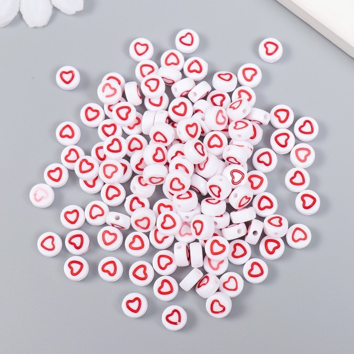 Бусины для творчества пластик "Красное сердце с белой серединкой" набор 20 гр 0,7х0,7х0,4 см 464563