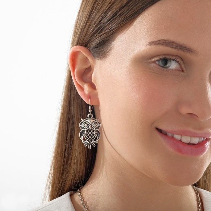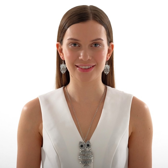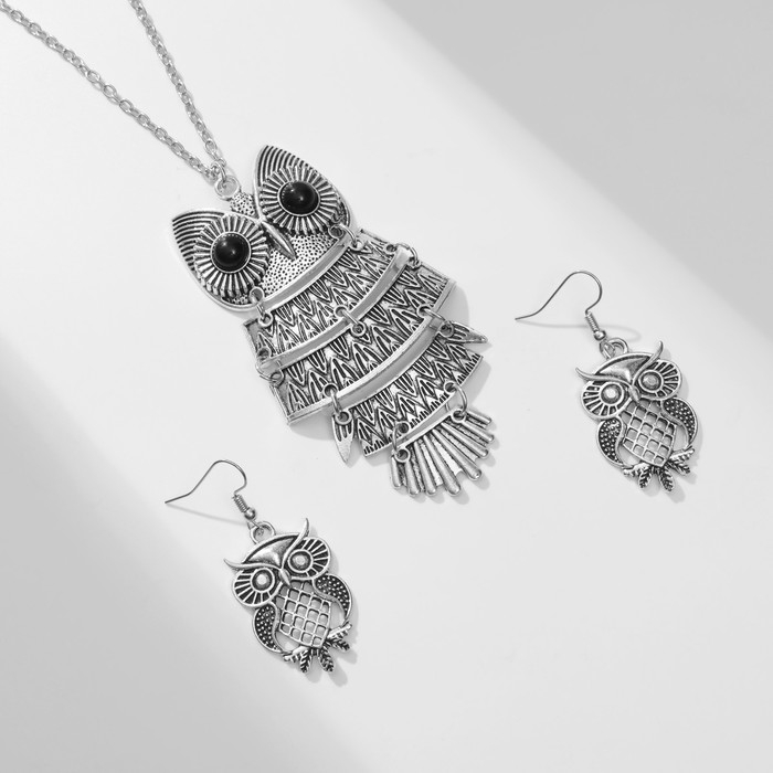 Гарнитур ассорти: серьги, кулон «Сова», цвет чернёное серебро, 60 см