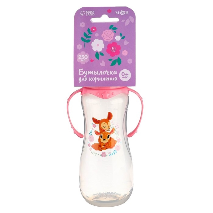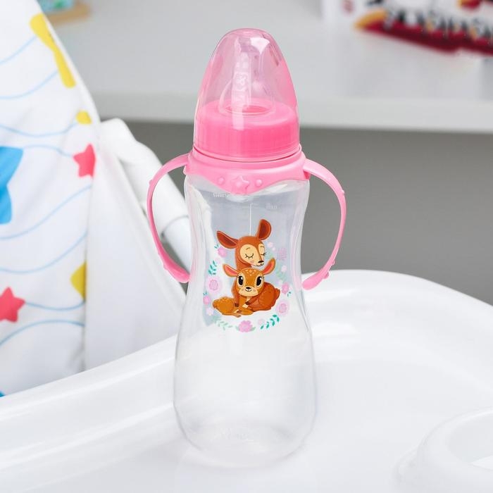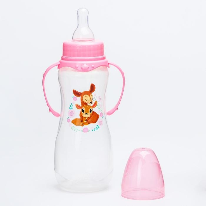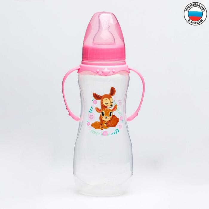 Бутылочка для кормления «Оленята: мамы и малыши», классическое горло, 250 мл., от 0 мес., приталенная, с ручками