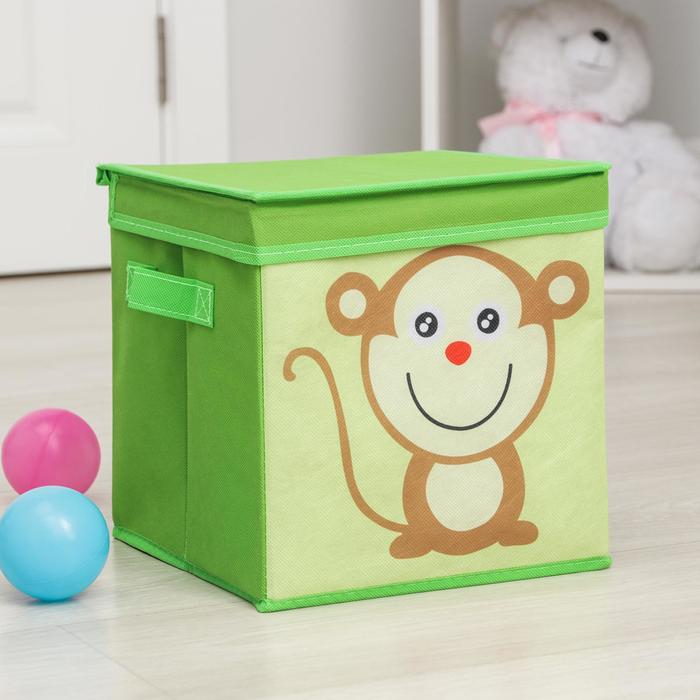 Короб стеллажный для хранения с крышкой «Обезьянка», 25×25×25 см, цвет зелёный