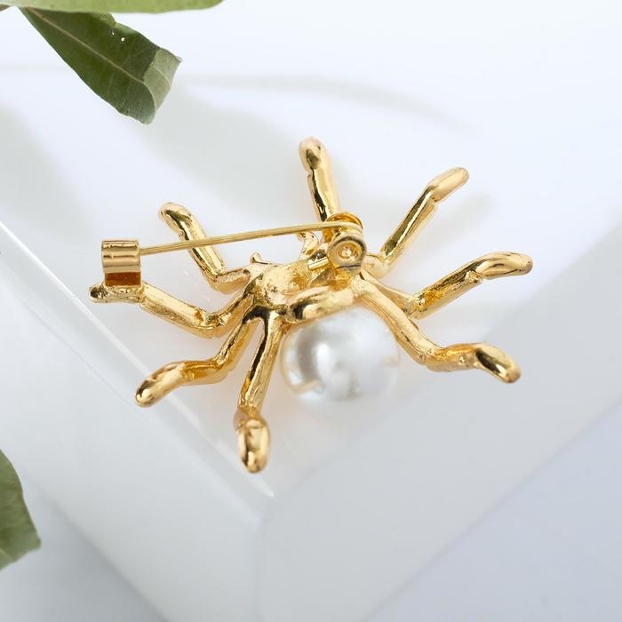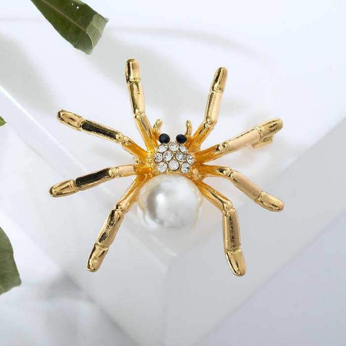 Брошь «Паук» жемчужинка, цвет белый в золоте