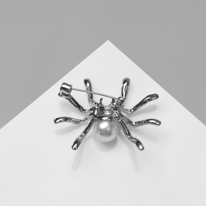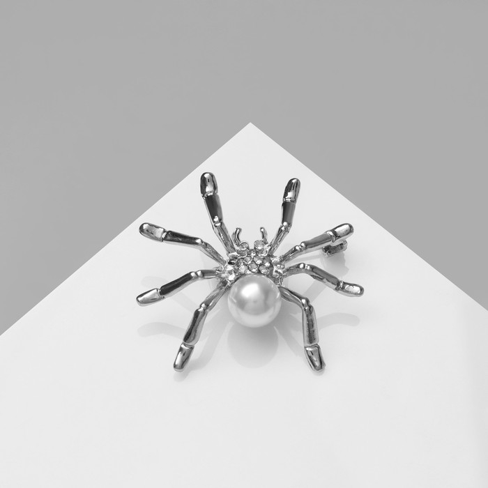 Брошь «Паук» жемчужинка, цвет белый в серебре