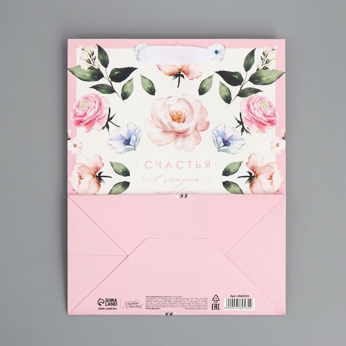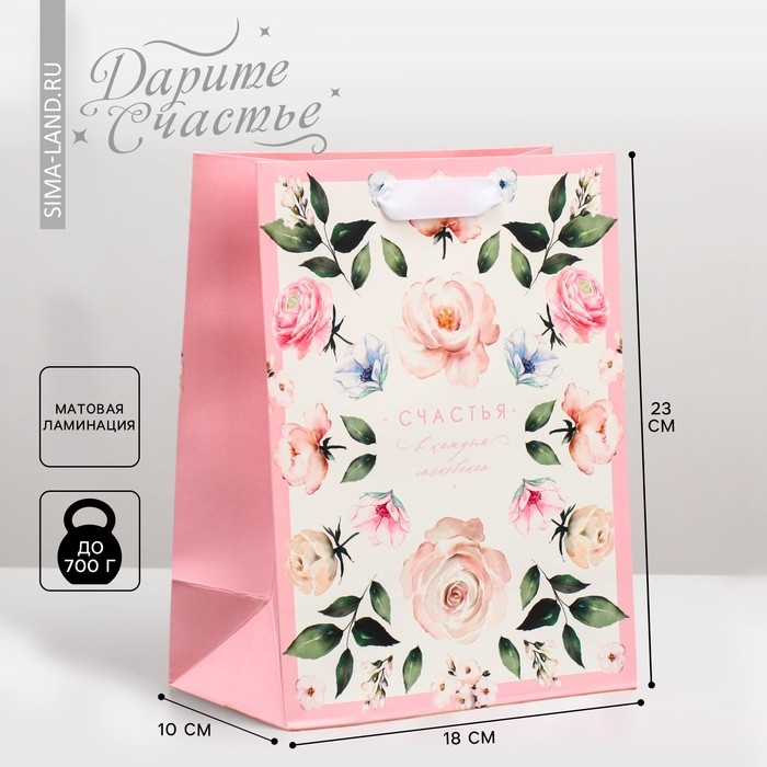 Пакет подарочный ламинированный вертикальный, упаковка, «Счастья», MS 18 х 23 х 8 см