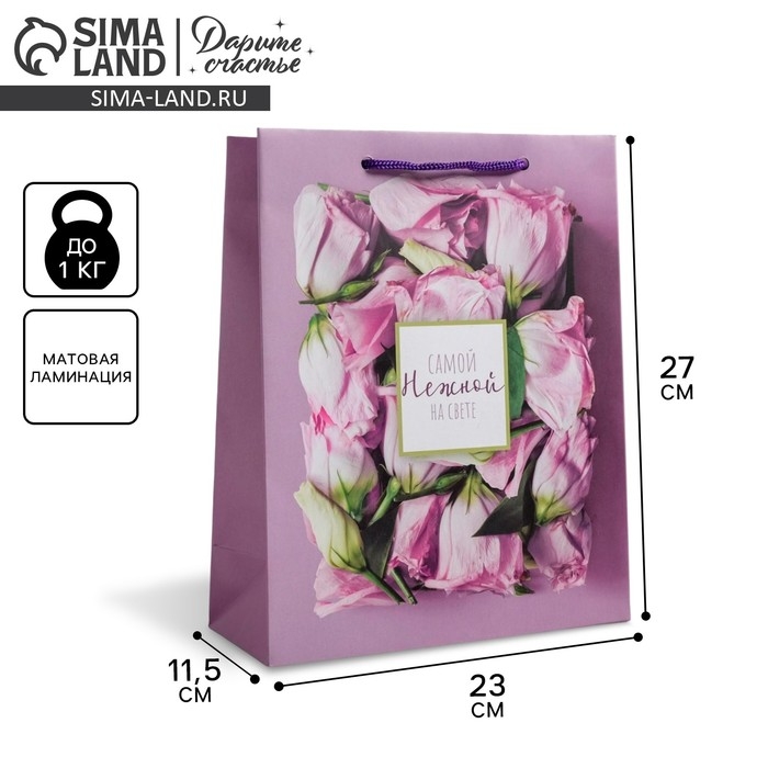 Пакет подарочный ламинированный вертикальный, упаковка, «Самой Нежной на свете», ML 23 х 27 х 11,5 см