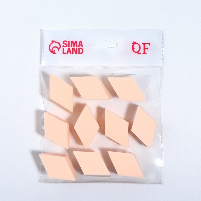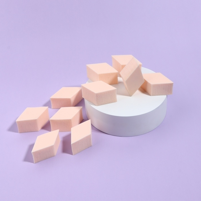 Спонжи для макияжа «Ромбы», набор - 10 шт, 4,5 × 2,5 см, цвет бежевый