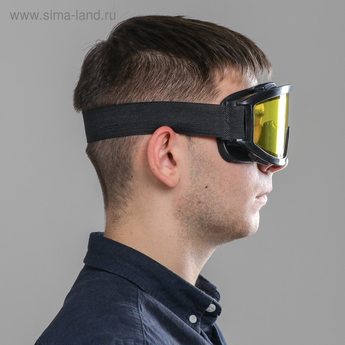 Очки-маска для езды на мототехнике, стекло желтое, цвет черный