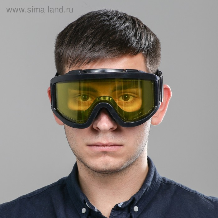 Очки-маска для езды на мототехнике, разборные, стекло желтое, цвет черный