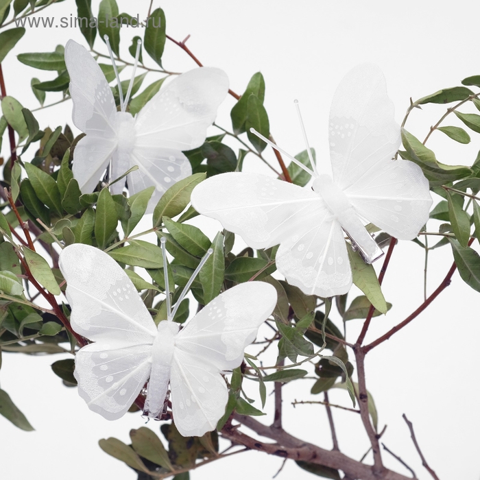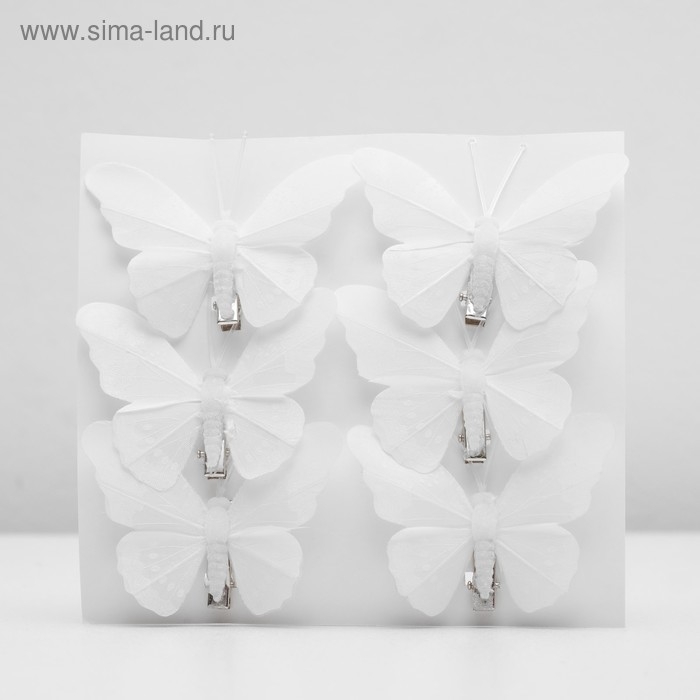 Бабочка для декора и флористики, на прищепке, пластиковая, белые, 1 шт., 7,5 х 6 х 1 см