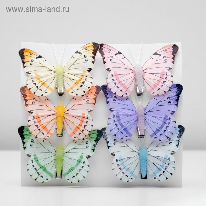 Бабочки для декора и флористики, на прищепке, пластиковые, микс, 5 см и 8 см