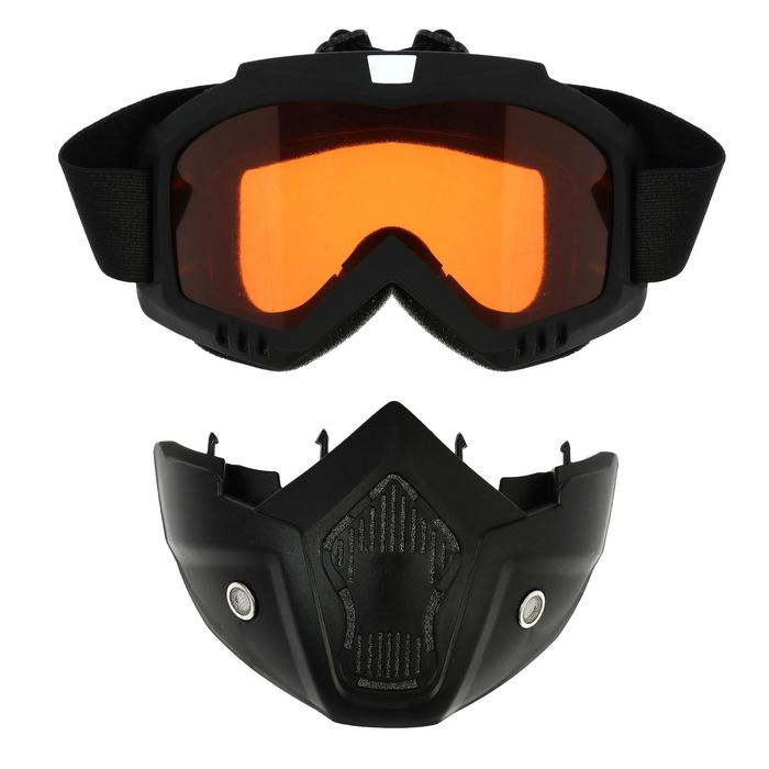 Очки-маска для езды на мототехнике, разборные, визор оранжевый, цвет черный