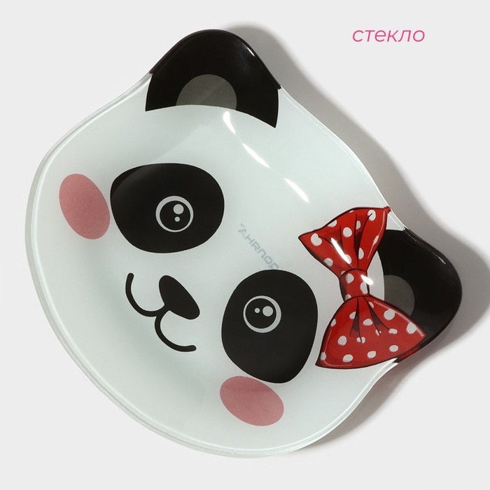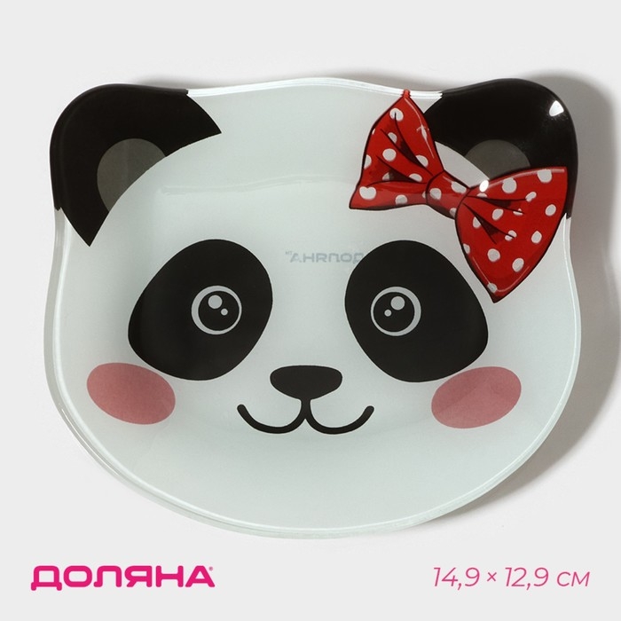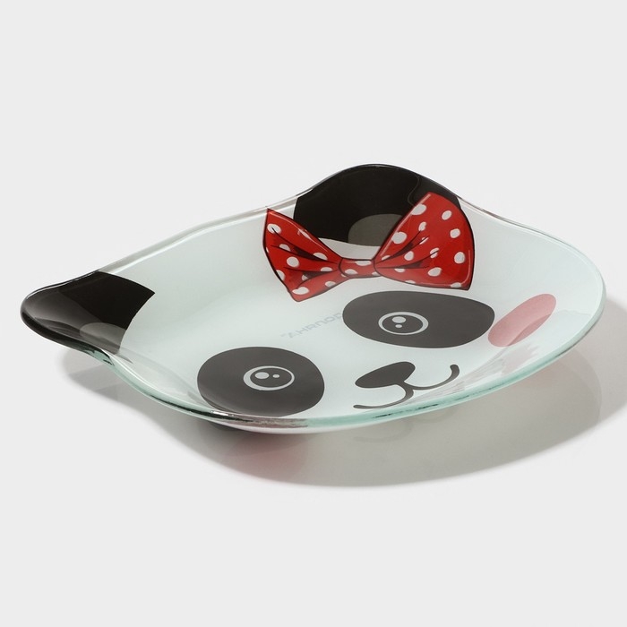Тарелка стеклянная Доляна «Панда девочка», 14,9×12,9 см, цвет белый