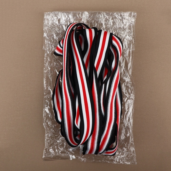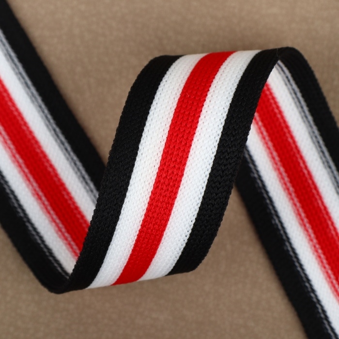 Тесьма трикотажная лампас 25 мм, 9,1 ± 0,5 м, цвет белый/чёрный/красный