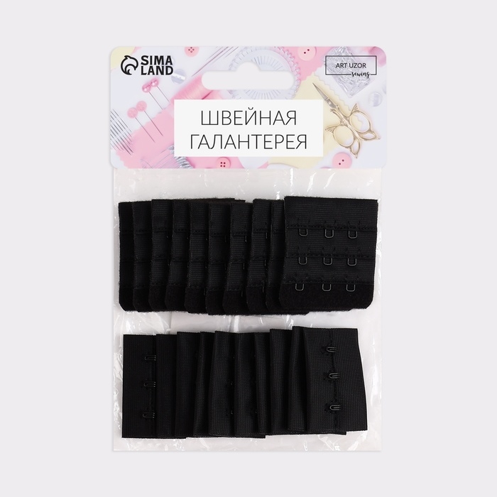 Застёжка для бюстгальтера, 3 ряда 1 крючок, 2 × 2,8 см, 2 × 5 см, 10 шт, цвет чёрный